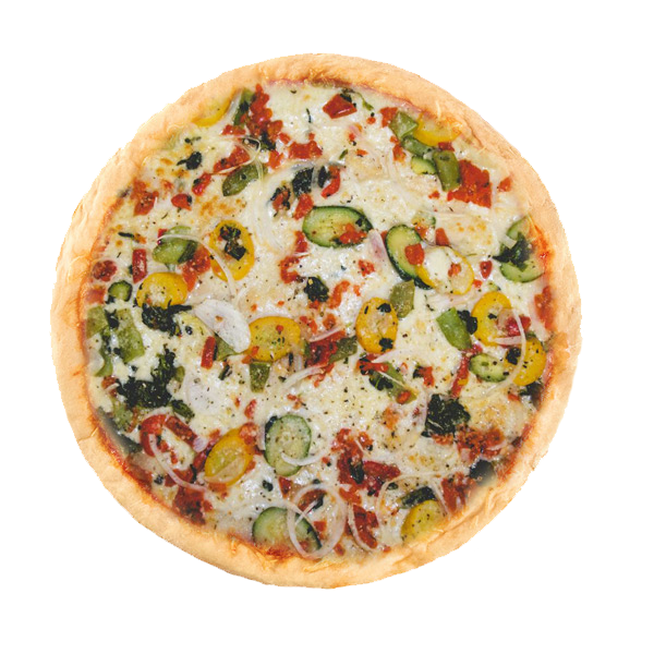 Grated parmesan cheese & steak combined with sautéed peppers & onions over a garlic spread on the crust.